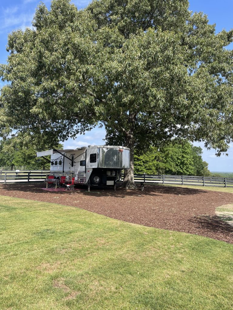 Two 30amp and Two 50amp hook-ups with water available under a large oak tree on a landscaped camping area. Enjoy access to two full restrooms with full showers with great Wifi.